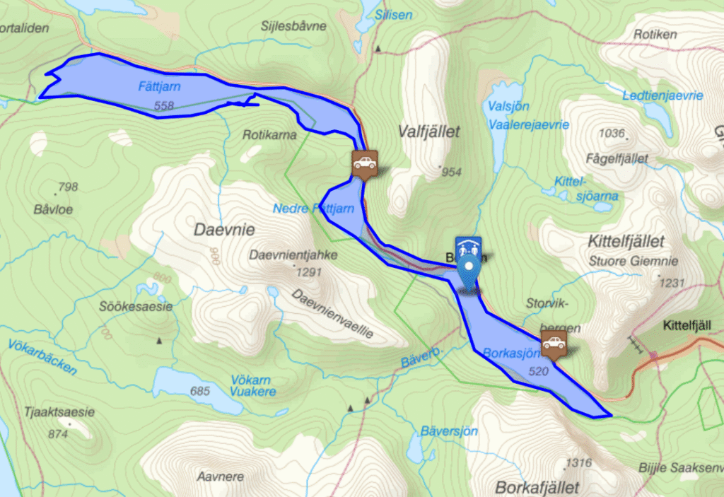 Borkans samfällighetsförening upplåter fiske på Borkan 420 ha, nedre Fättjaur 80 ha och på övre Fättjaur 180 ha. Sjöarna hyser röding, öring och i de strömmande delarna även harr. Det finns det gott om småröding, men det går även att få en och annan större öring. Borkasjön är väldigt djup, hela 62 meter. Längst upp i sjön är det grundare och chansen att få mycket fisk är bra.
